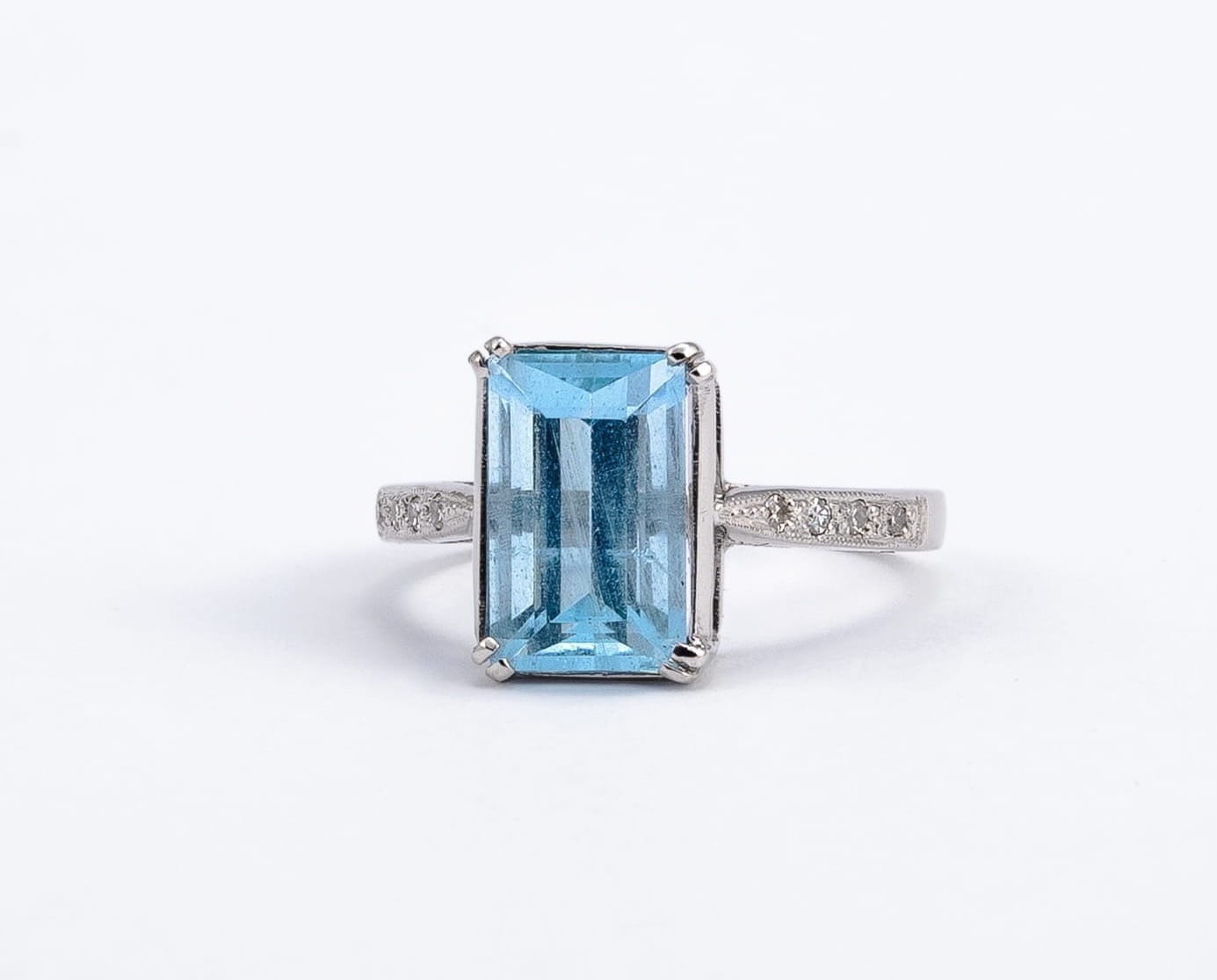 Pierścionek z białego złota z topazem i diamentami